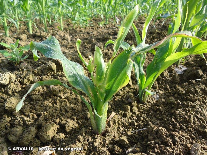 - Du tallage, suite au blocage de l’apex par les enzymes secrétées par les larves,