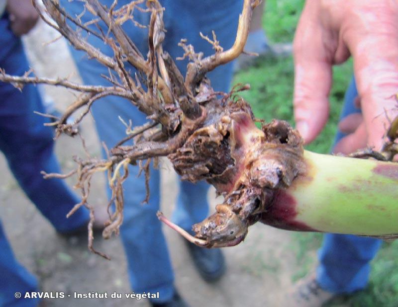 Verse et racines atrophiées, mais nécrosées