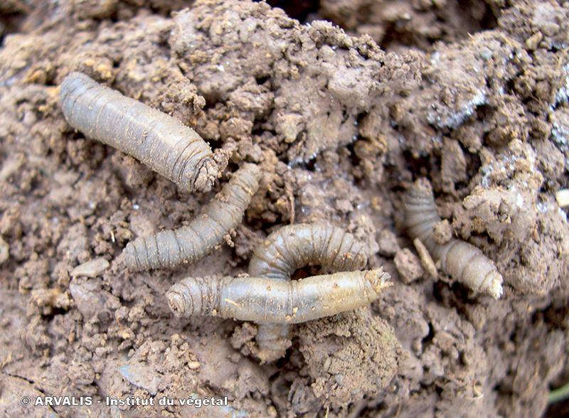 La larve des tipules sectionne les feuilles ou la plante et peut causer de gros dégâts en particulier sur les cultures de printemps (orge surtout).