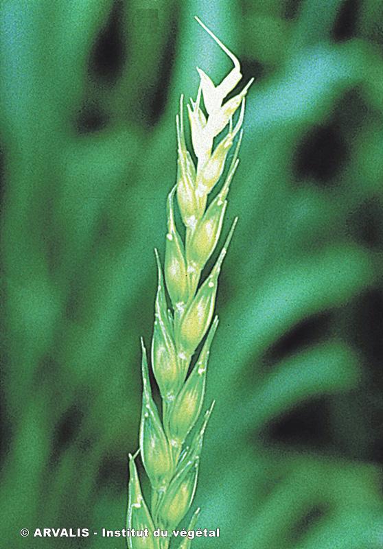 | Titre : Epillets desséchés Description : Quelques épillets au sommet de l'épi peuvent être desséchés en cas de gel modéré. |