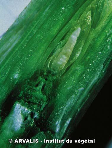 Arrêt de croissance puis régression des tiges les plus avancées (maître brin et 1ères talles primaires). Les talles plus jeunes poursuivent leur croissance. De nouvelles talles peuvent démarrer. Lorsque l’apex est détruit il peut entraîner le pourrissement de la base de la dernière feuille qui jaunit.