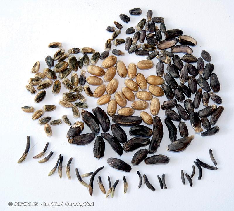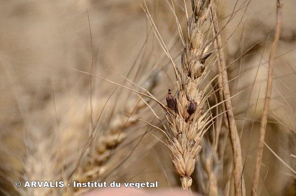 Les symptômes apparaissent seulement sur les épis car le champignon attaque l’inflorescence des céréales.