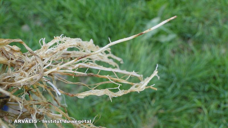 Laver soigneusement les racines des plantes atteintes, la comparaison avec les racines de plantes saines confirme l’observation.