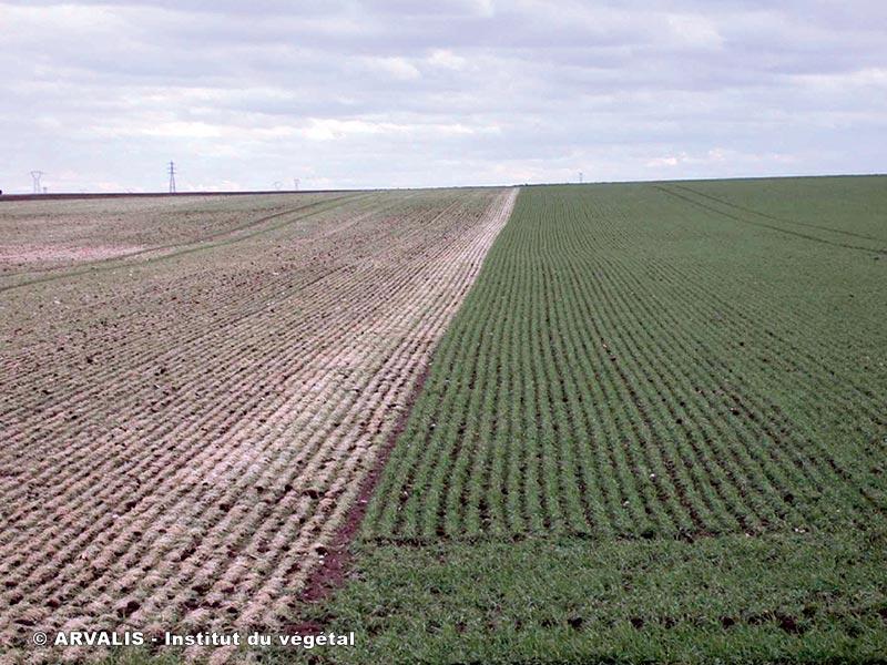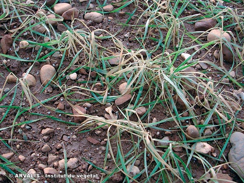 - Les semis profonds. Dans le cas de semis profonds (supérieurs à 4-5 cm), le rhizome ou entre-noeud souterrain reliant le grain au futur plateau de tallage peut être rompu mécaniquement dans certains types de sol qui se soulèvent comme les argilo calcaires, caillouteux, ou les sols de craie.