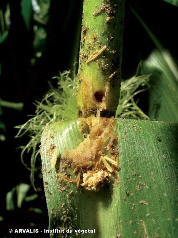 La pyrale du maïs est le ravageur aérien le plus fréquemment observé. Sa nuisibilité est cependant très variable selon son abondance et sa biologie. Ces deux éléments sont variables selon les secteurs géographiques.