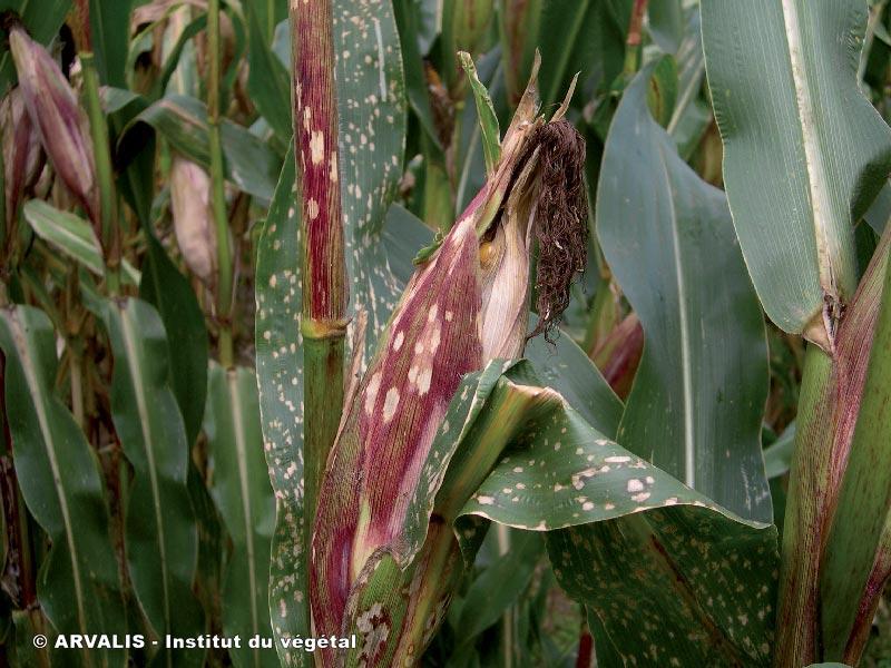 - L’épi peut noircir lorsque les taches sur les spathes se rejoignent, indice d’une forte attaque,